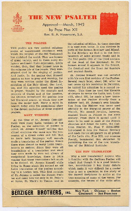• Psalterium = the Psalms, forming the main portion of the Hour;